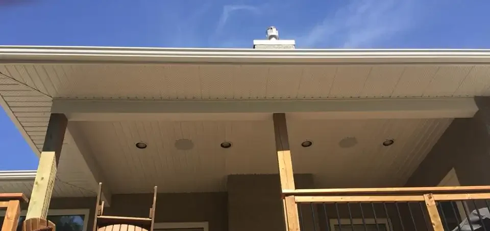 We remove the old soffit, check for signs of moisture damage or animal intrusion in the attic space, install new vented panels with proper alignment and fastening, and make sure the transition between soffit, fascia, and siding is clean and tight. If your home doesn’t have adequate ventilation, we’ll recommend upgrades — adding more vented panels or installing continuous vent strip — to meet current building standards.